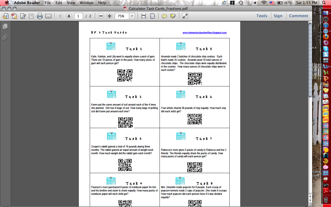 Happy Saturday! I hope everyone is enjoying the weekend. Last night I created these task cards to use in the classroom on Monday. I tried to use the borders, but nothing seemed to cooperate with me late last night. That being said, they are simple task cards I plan to dress up with colored card stock and of course a laminator! You can grab your copy here. I really like the calculator task card recording sheet inspired by Traci Bender over at the benderbunch. You can grab my version here. They're labeled calculator task cards; however you could use them without a calculator. They have QR codes on them, but leave a comment with contact information if you need task cards without QR codes. After our practice EOG last week I've reflected on things and decided we need lots of practice with calculators! Our state test is divided into calculator inactive (paper/pencil only) and calculator active (students have the option to use a calculator). I realized there's no point in having the calculator as a resource unless the children know how to use them. This week we are going to be calculator maniacs to make sure they are comfortable and ready to use them on the state tests. I hope you enjoy the task cards and can use them in your classroom. Have a great weekend! :)) ~Amanda